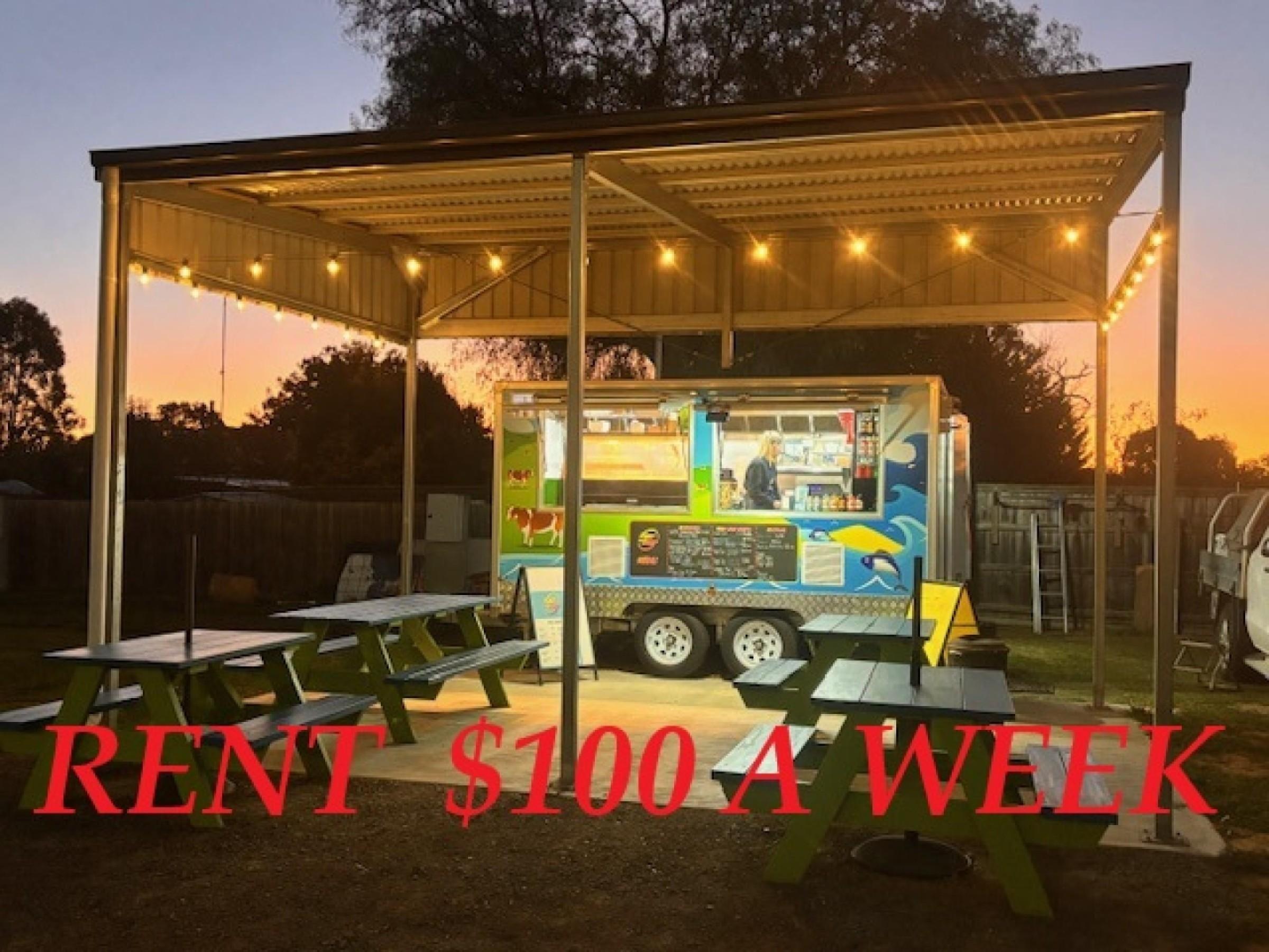 For customers who want to stop and sit to eat, there is an area for tables and chairs under a large fixed canopy.